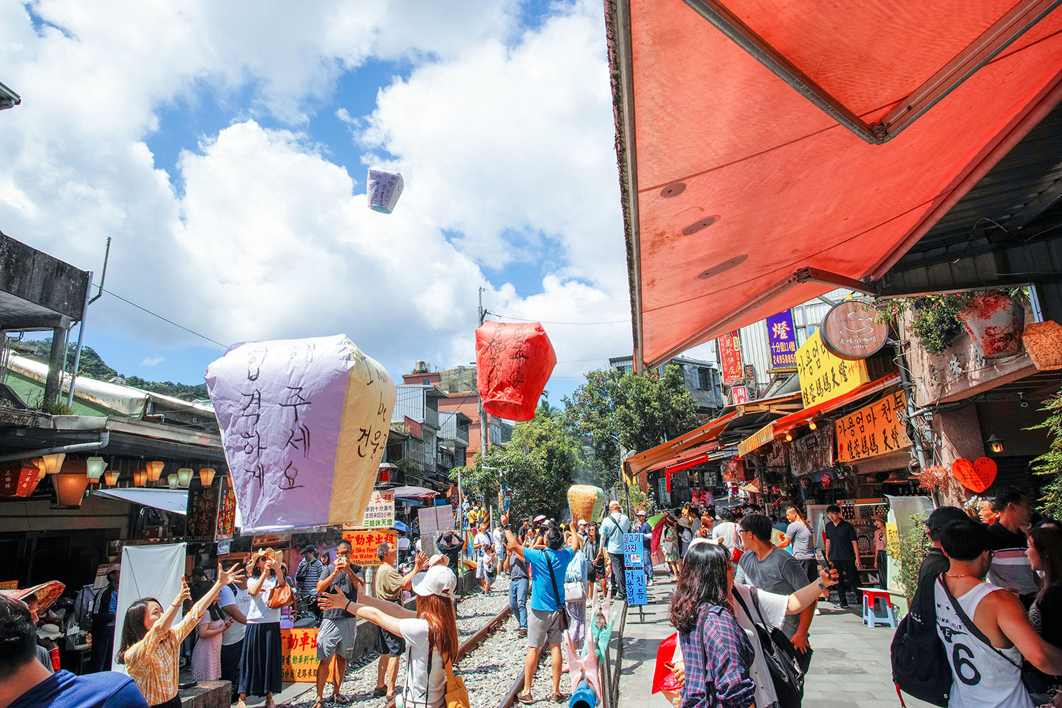 台湾北部「十份」では、数多く人たちがランタンに願いを込めてそらへ放つ風景が広がります。