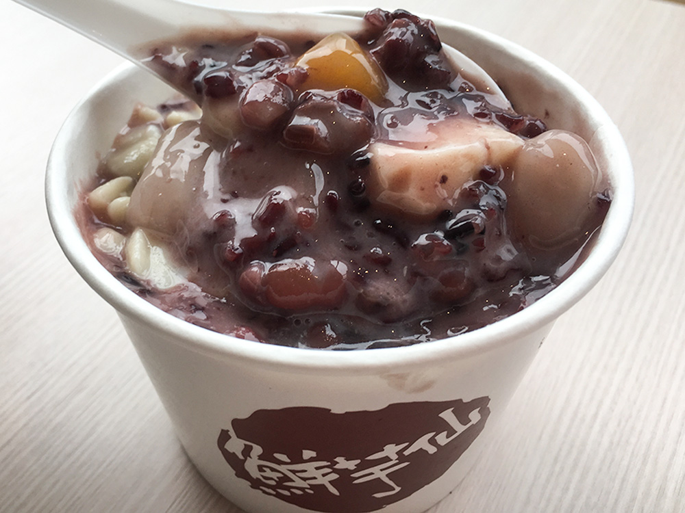 91番の紫黒米豆花のMサイズ。ホットのチョイスしました。思ってたより甘さ控えめ食べやすいです。